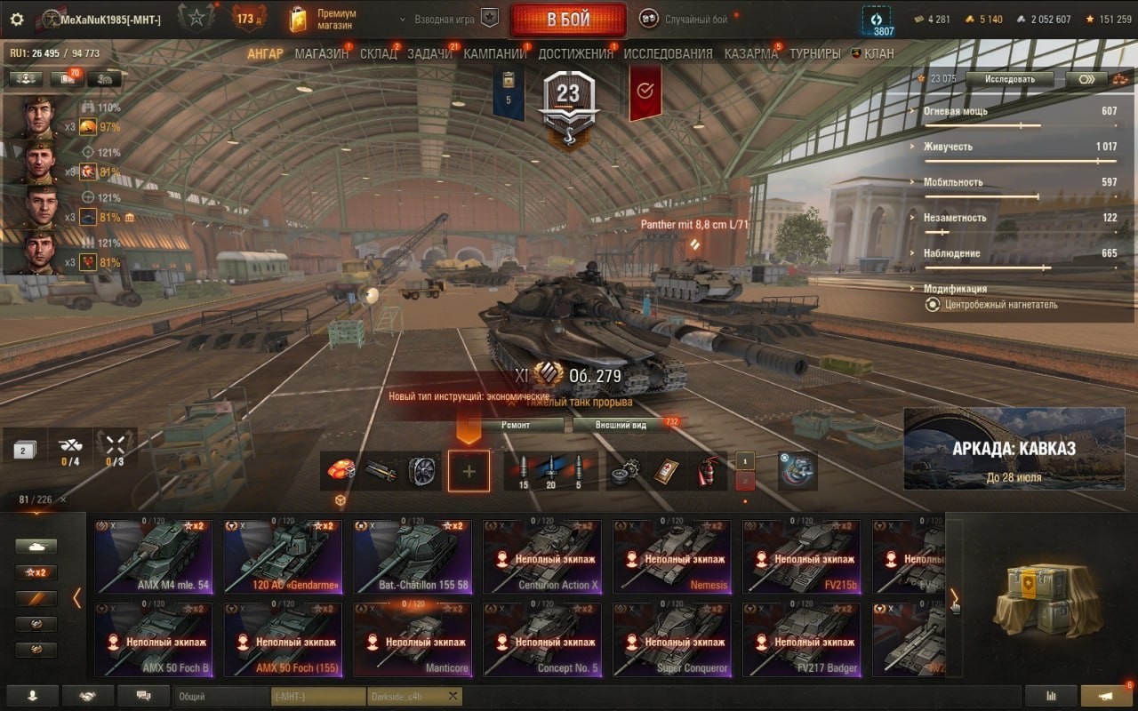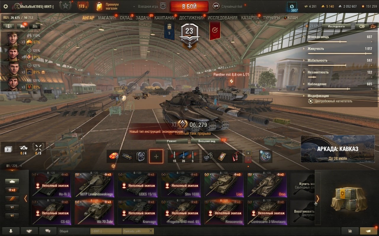81 прем, Об 279, Gendarme, WT E100, Н-3, Nemesis, BZ-74-1, Об 780, Kpz 07, Orso, LION, XM57, 5к золота, 124 према