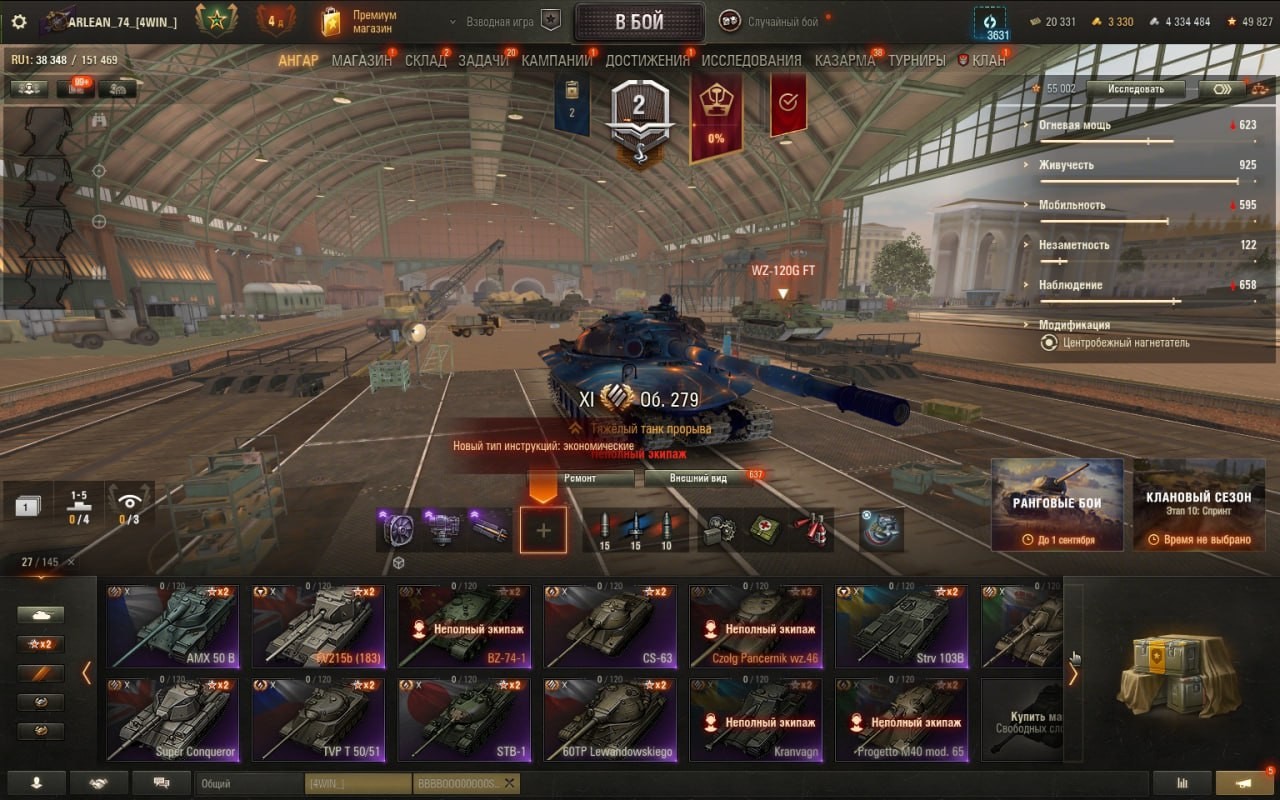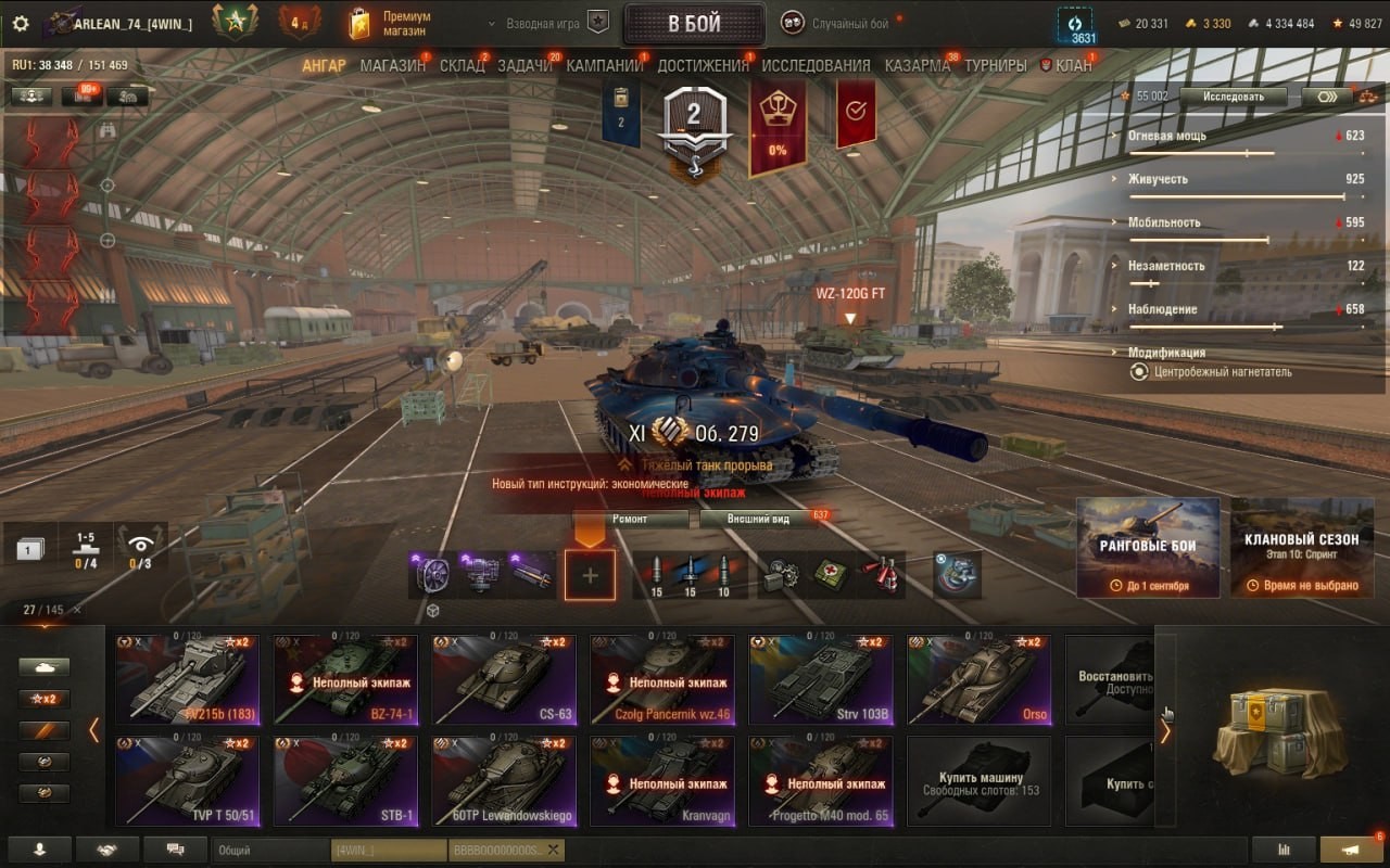 27 топов, Об 279, Об 260, Об 780, BZ-74-1, Orso, Czolg (P), 3к золота, много бон, 49 премов