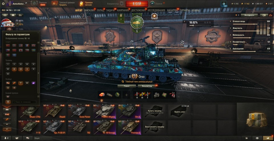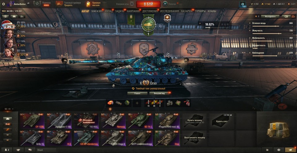 12 топов, Orso, Gendarme, H-3, Nemesis, BZ-74-1, СУ-122В, 17500 золота, 10 премов, последний бой 19.10.2025