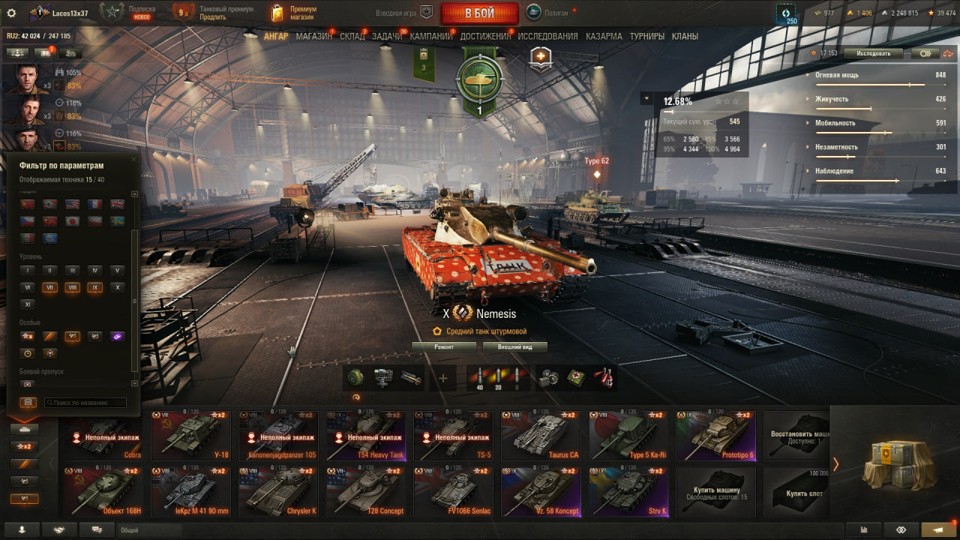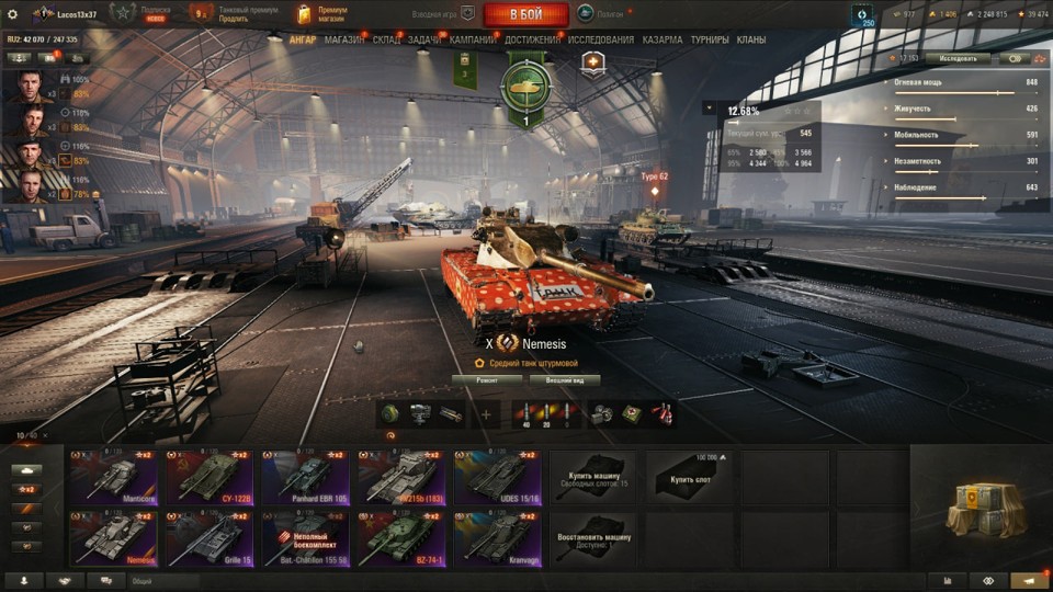 [РАСПРОДАЖА] 10 топов, Nemesis, BZ 74-1, СУ-122В, 15 премов, последний бой 15.08.2025