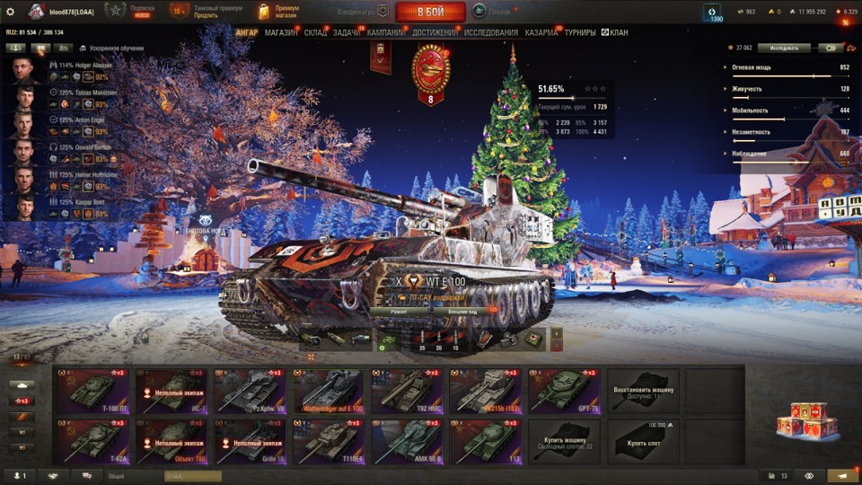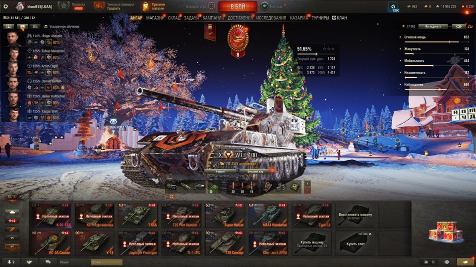 [РАСПРОДАЖА] 13 топов, WT E100, Об 780, 13 премов, много серебра