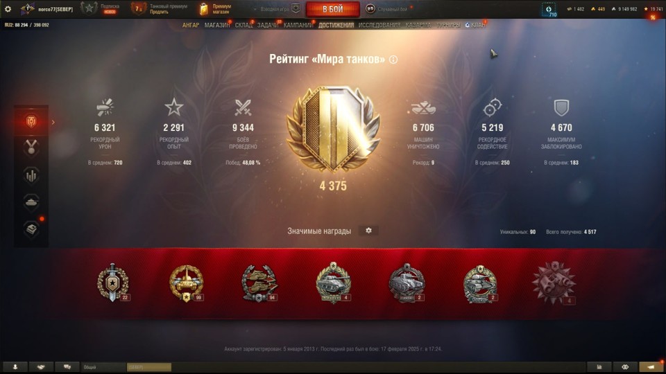 [РАСПРОДАЖА] 5 топов, Об 780, 8 премов, последний бой 17.02.2025