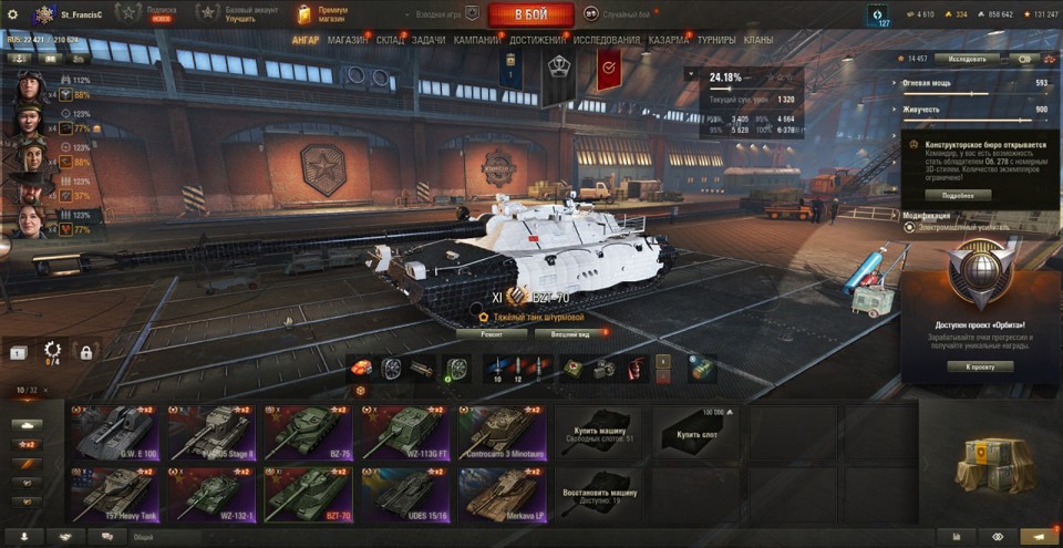 [РАСПРОДАЖА] 11 лвл: BZT-70, 9 топов, 9 премов