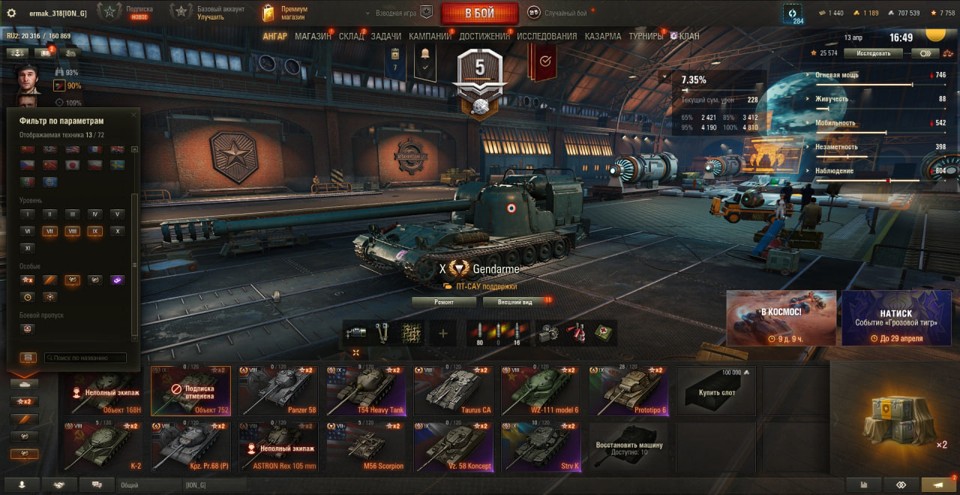 [СМЕНА ПАРОЛЯ] 4 топа, Gendarme, BZ-74-1, 13 премов