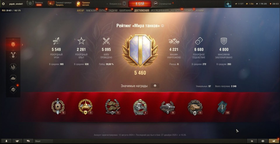 6 топов, Gendarme, BZ-74-1, Nemesis, СУ-122В, Grayhound, 19 премов, последний бой 27.12.2025